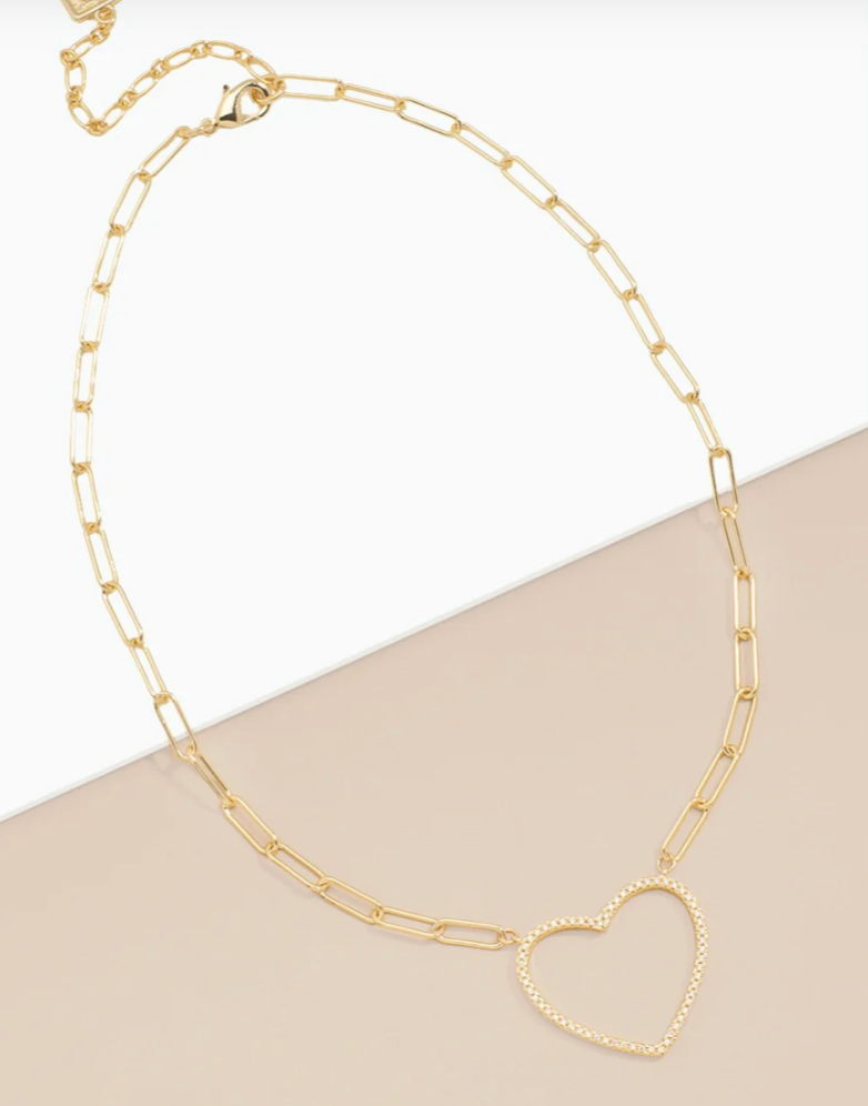 Zenzii Paperclip Link Collar Necklace With Pavė Heart Charm