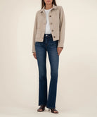 - A fresh twist on a classic, this cropped trucker jacket features front patch pockets, a button-front closure, and a soft suede-feel material for a refined touch. Perfect for layering, it adds structure and style to any outfit.