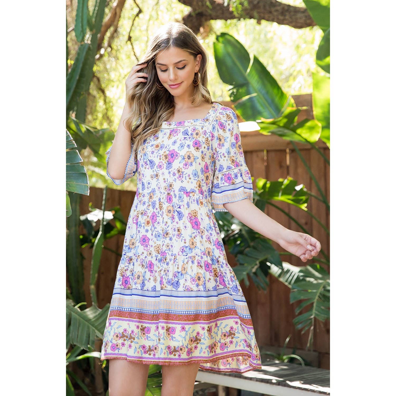 Flower Print Short Sleeve Dress
