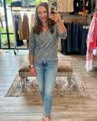 3/4 Sleeve V Neck Knit Tee - space dye