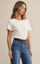 Softness meets style in this luxe brushed slub jersey tee, cut in a relaxed, roomy silhouette. With an easy crew neckline, it's the tee you'll wanna wear all season.