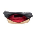 - Brushed gold-tone hardware with red zip or gunmetal hardware or gunmetal hardware with red zip, 1 back cell phone drop pocket, front zipper flap Ideal for sunglasses